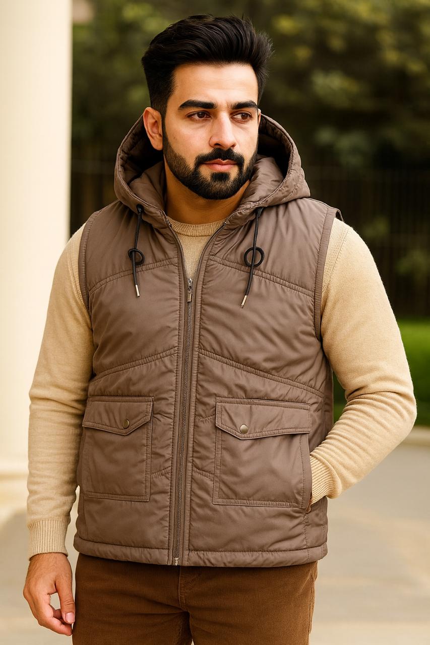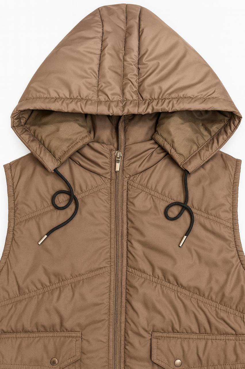 Button & Threads™ Sleeves Less Brown Double Pocket Puffer Jacket