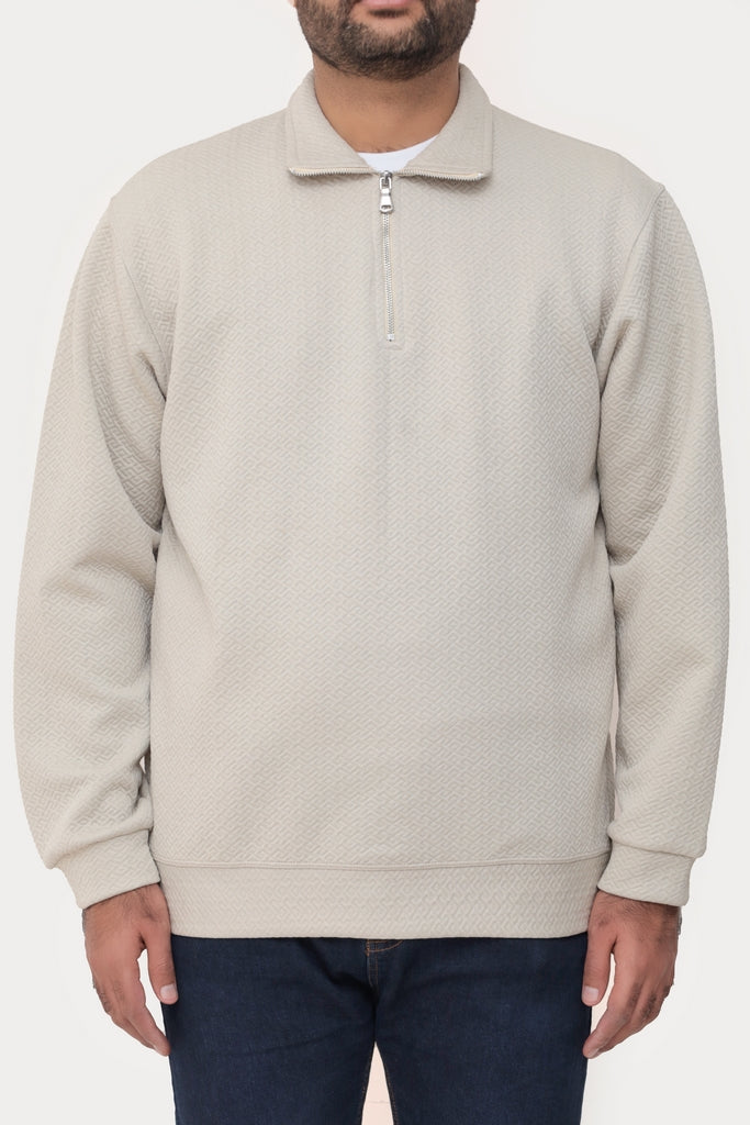 Old Money Men's Zipped Light Beige Textured Sweat Shirt