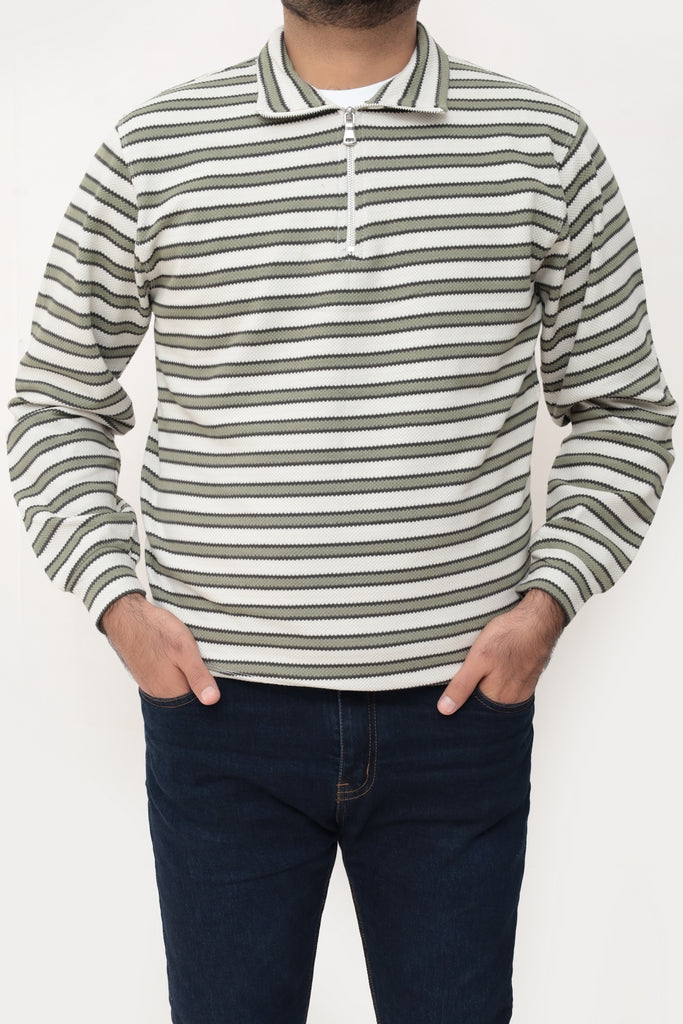Old Money Men's Zipped Olive Green Boarder Stripes
